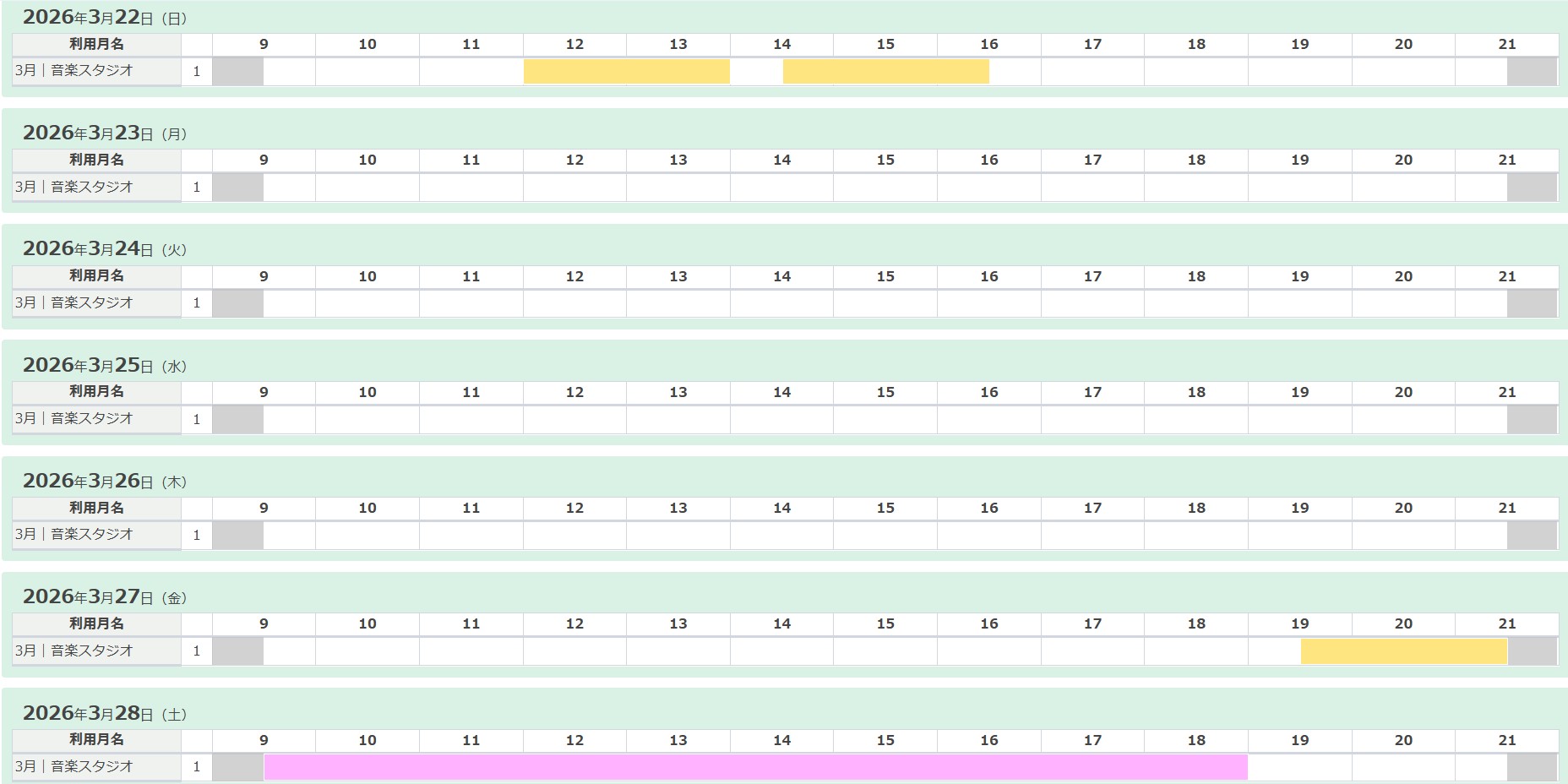 ●本システムの使い方は[音楽スタジオ予約システム(利用の手引き).pdf]をご参照ください。